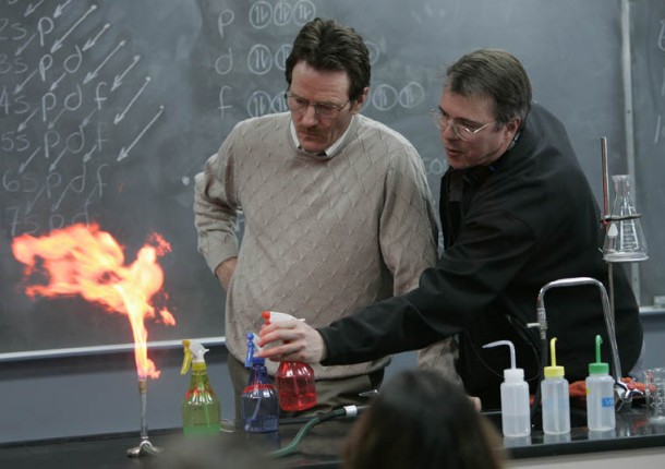 Чтобы сериал смотрелся максимально реалистично, Гиллиган пригласил на пост консультанта профессора органической химии Донну Нельсон. Она просматривала каждый сценарий и следила за тем, чтобы все диалоги об изготовлении метамфетамина выглядели правильными с научной точки зрения, но при этом не казались перегруженными терминологией. Эксперты в области химии сошлись во мнении, что показанный в сериале способ изготовления синего мета достаточно правдоподобен. При этом авторы сериала специально не стали показывать весь процесс и соблюдать правильный порядок действий, чтобы их детище не стало учебным пособием для доморощенных Хайзенбергов. Любопытно, что вместо финального продукта на съемках использовались всего лишь безобидные синие леденцы.