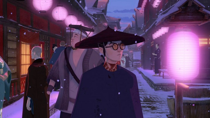 Отдельно стоит поговорить о графике и анимации «Голубоглазого самурая»: ставшее популярным сочетание 2D и 3D используется и в этом шоу. Кстати, тенденцию отчасти задали сами Netflix, показав эту технику в сериалах «Любовь, смерть и роботы» и «Аркейн». Именно с последним хочется ассоциировать «Самурая», но он все равно слишком аутентичен и уникален. «Во-первых, это красиво» — такой избитой, но максимально уместной фразой можно описывать увиденное на экране. Задники «Самурая» похожи на исполненные широкими мазками холсты. Пока Мизу прокладывает свой кровавый путь по стране, мы видим заснеженную бело-голубую Японию, оскверненную только пролитой героиней кровью врагов. А захватывающие дух кадры сражения Мизу и наемника из клана «Четыре клыка» врезаются в память не хуже сцен из фильмов мастера Акиры Куросавы, чьим работам отдают дань художники французской студии Blue Spirit, имеющей в своем активе номинацию на «Оскар» за «Жизнь Кабачка».