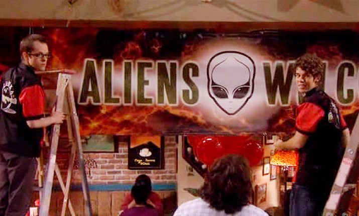 "Эврика". Слева на стремянке стоит Фарго - большой любитель нажимать на кнопки.