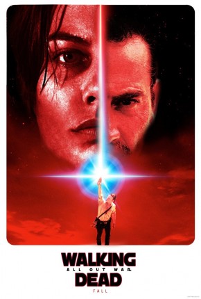 Цветовая гамма, световой меч — все это повторяет афишу «Звездных войн», вот только действующие лица другие. Чести присутствовать на первом плакате к восьмому сезону сериала удостоились Мэгги, Ниган и Рик Граймс. Надпись же на нем намекает на то, что в основу новых эпизодов будет положена сюжетная арка «Всеобщая война» из комиксов Роберта Киркмана.