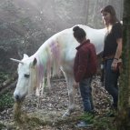 как же ни о чем?! серия про единорогов! и про то, что не всем они приносят счастье и удачу! :)
