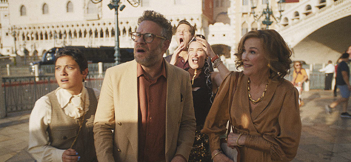 Во первых сценарий написал 1 человек. Он же режиссёр, он же исполнитель главной роли Сэт Роген.