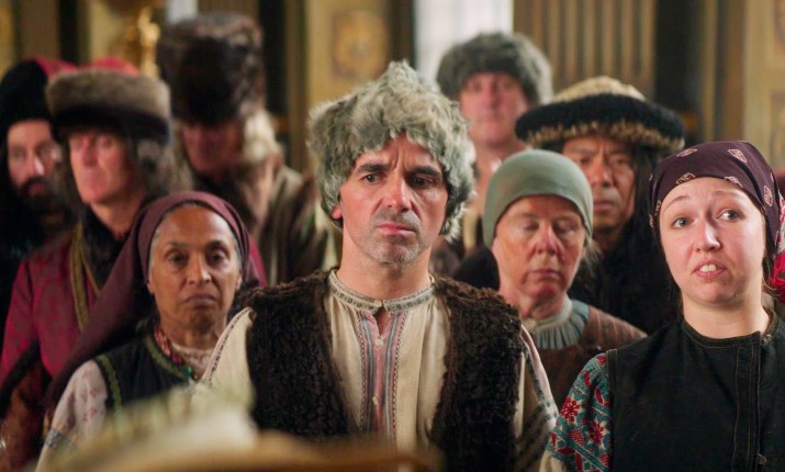 Подсказка: этот веселый капустник с нелепыми танцами и эксцентричными выходками героев принадлежит перу сценариста, номинированного на «Оскар» за похожую псевдоисторическую драмеди.