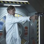 Я подумал, что гибрид хотел чтобы марсианка его пристрелила, и подставил затылочную часть. Типа "убееейте меня". Спасибо комментариям за разъяснение.